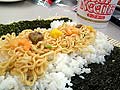 OH!MYコンブ懐かしいねということで、カップラーメンの麺をご飯と海苔で巻いて、スープをつけて食べるというのをやってみることになりました。せっかくだから新しい美味しさを発見すべく、いろんな食材を巻いてみました。ヨーグルトとか。(´д`)