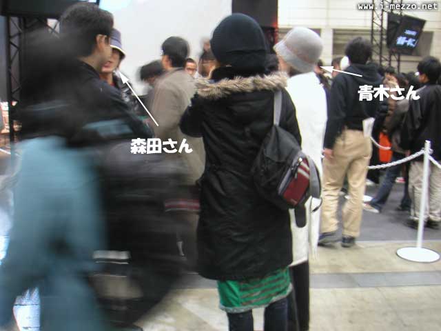 ティーダ役の森田さんとユウナ役の青木さんがお忍びでいらしてたみたいです! マジびびった。 一般客にまぎれていらせられましたですよ。(≧▽≦)/ 誰も気付いてなかったっぽい。→ちょっと優越感。 で、彼らに気を取られてる隙に、すぐそこを見たことのある髭おじさんがつかつか歩いてるじゃないですか! ティーダ&ユウナは深々と帽子かぶってて、よほどの人じゃないと気付かないけど、 そのおじさん、そのまま歩いてる! 植松さん、少しは変装とかしてくださいヨ! わかりやすすぎて、逆に誰もサインとか求めないとか、そんなかんじですか!? 植松さんを尾行していって立ち止まって話してるところを遠くから見てたら、 不意に、ぼくの真横でユウナが「植松さんだー」って!("ユウナ"じゃないだろ) Σ( ̄□ ̄!! 確かに、今はっきりとユウナの声が! ありえない、ありえない、ありえない・・・、なんでこの豪華キャストが普通に歩いてるんだ!? ってーか、青木さんマジすぐそこにいるヨ。手が届くデスヨ。ひああああ。(混乱) 植松ラヂオ公開録音の直前には普通に僕の真後ろとかにいましたからね。 人ごみなので僕の友達は青木さんと接触してたしね。 この出来事のお陰でリアルタイム更新はぐずぐずになってしまったのでした。 だって、あまりに普通すぎて焦ったのなんのって。(小心者) 僕たちのほかにも青木さんと森田さんに気付いた女性が2名ほどいらして、 彼女たちは果敢にもアタックしにいったんだけど、その後どうなったんだろう。 .