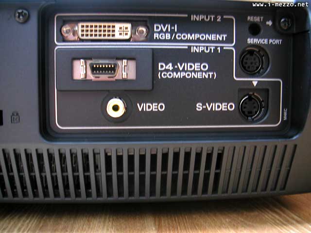 背面のインターフェイス部はこんなかんじ。 D-Sub15ピンはDVIから変換して接続します。同じようにコンポーネントもD端子に変換。 |