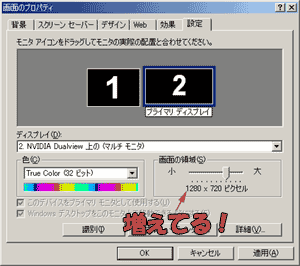 なのでDVDを投影すると普通のテレビでは見えないMPEG2のブロックノイズが見えてしまったりします(画面に近寄れば)。お店でプラズマテレビに映したDVDがあまり綺麗じゃないな、と思った方は多いと思うんですが、ちょうどあんなかんじです。 1280x720って多くのプラズマテレビと同じくらいの解像度ですからね。デジタルハイビジョン見るとすっごく綺麗なんでしょうけど、我が家にはそんなものはありません・゚・(ノД`)・゚・。